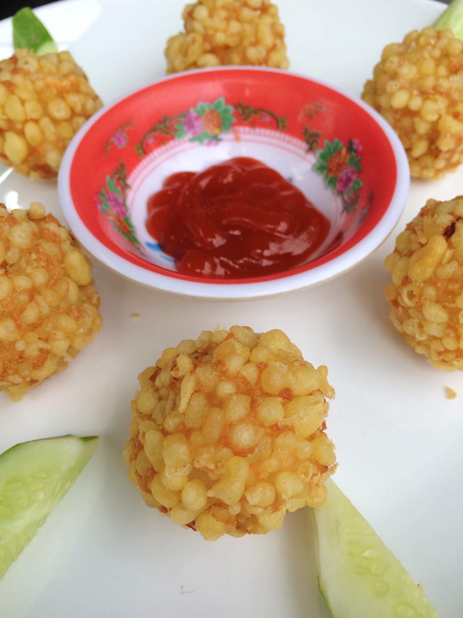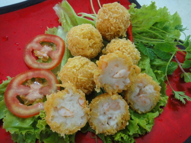 ? Thành phần: tôm, bột chiên giòn và gia vị.